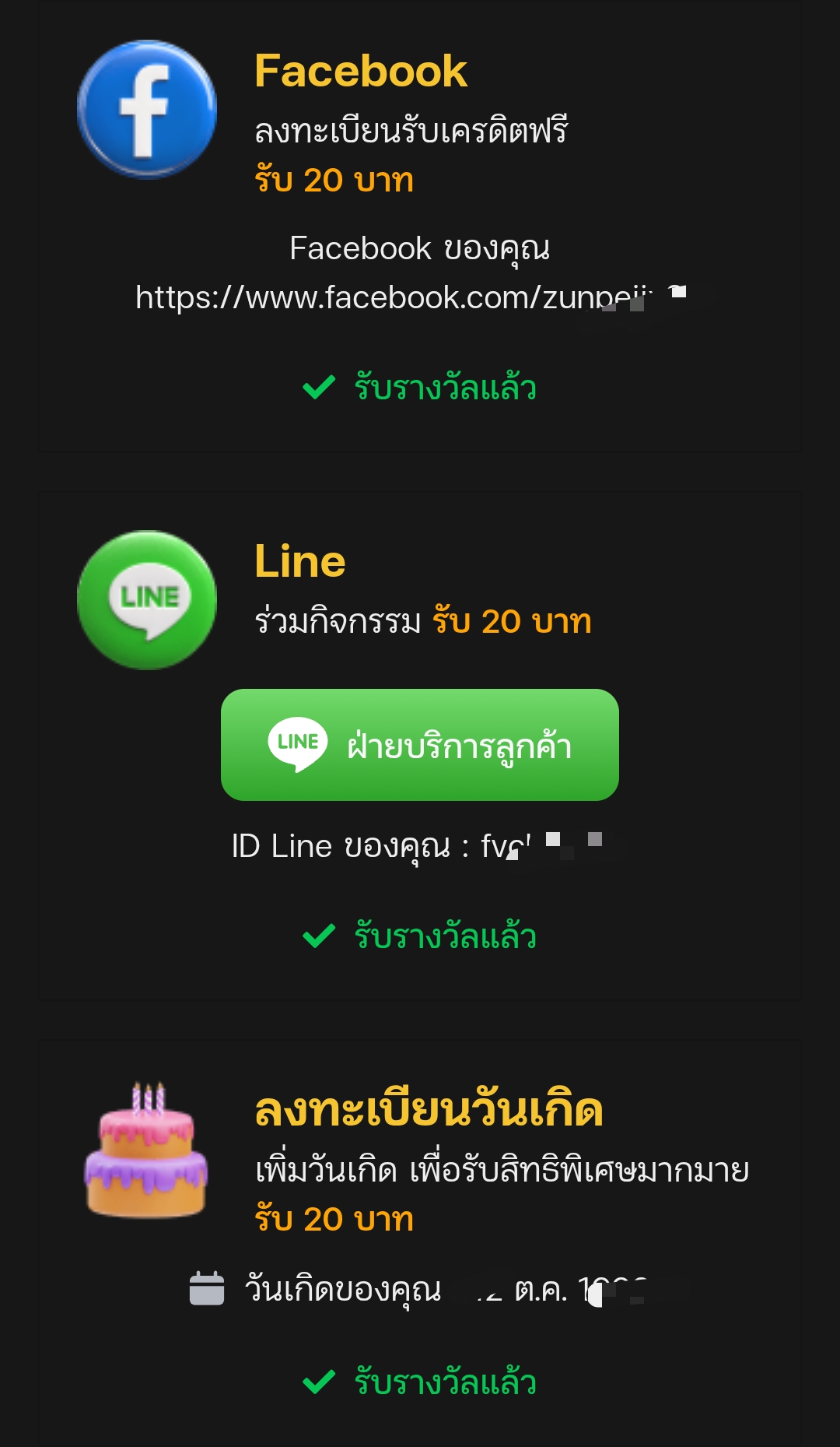 เบอร์โทรศัพท์ที่ใช้ในการสมัครเพื่อล็อคอิน